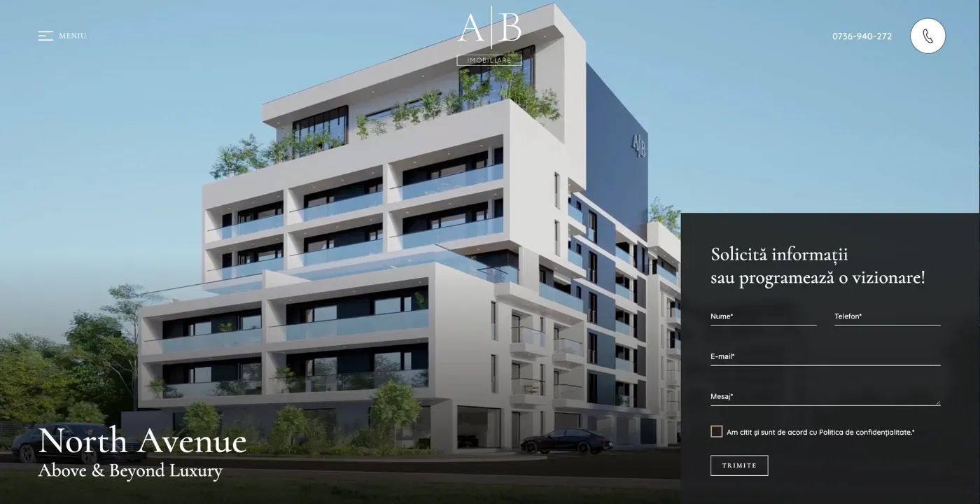 However, North Avenue by A|B Real Estate needed an online presence through which it could promote its residential art. And since our wizards are experts in the website, we decided to take up the challenge from A|B Imobiliare and develop a digital business card that would help them in effectively promoting the properties within this residential development.