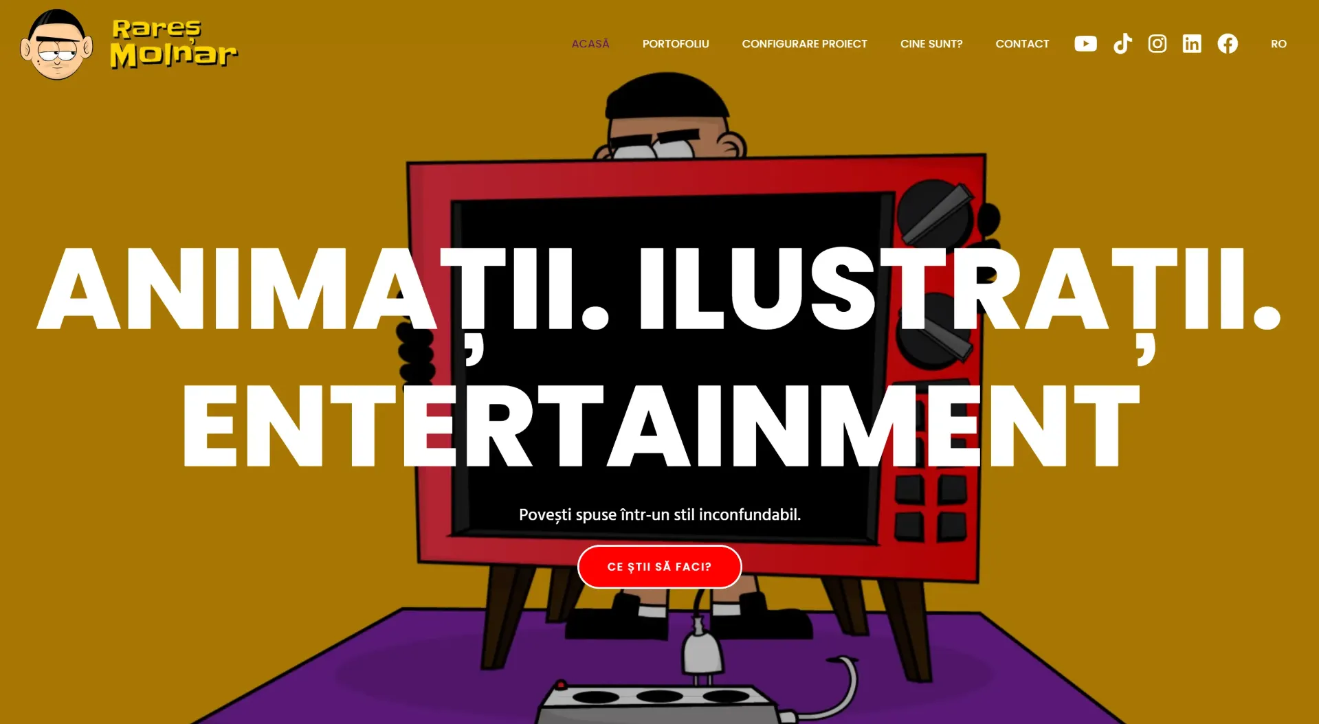 The website developed by the Magic 5 team perfectly reflects Rareș' personality, style and creativity. Everything is brightly colored, like his animations, and the characters take shape in an airy and well-defined space.